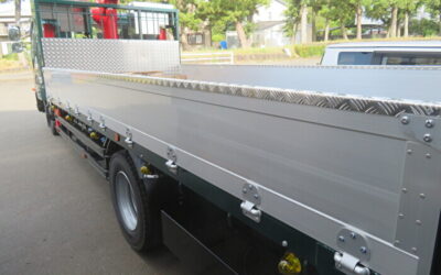 ボディー架装 アルミ縞板, キャビン塗装, トラック架装, ヒロボディー, ボディー架装, ユニック車, 床枠Uボルトフック取付, 株式会社ワイルドフラワー, 鳥居工具箱制作
